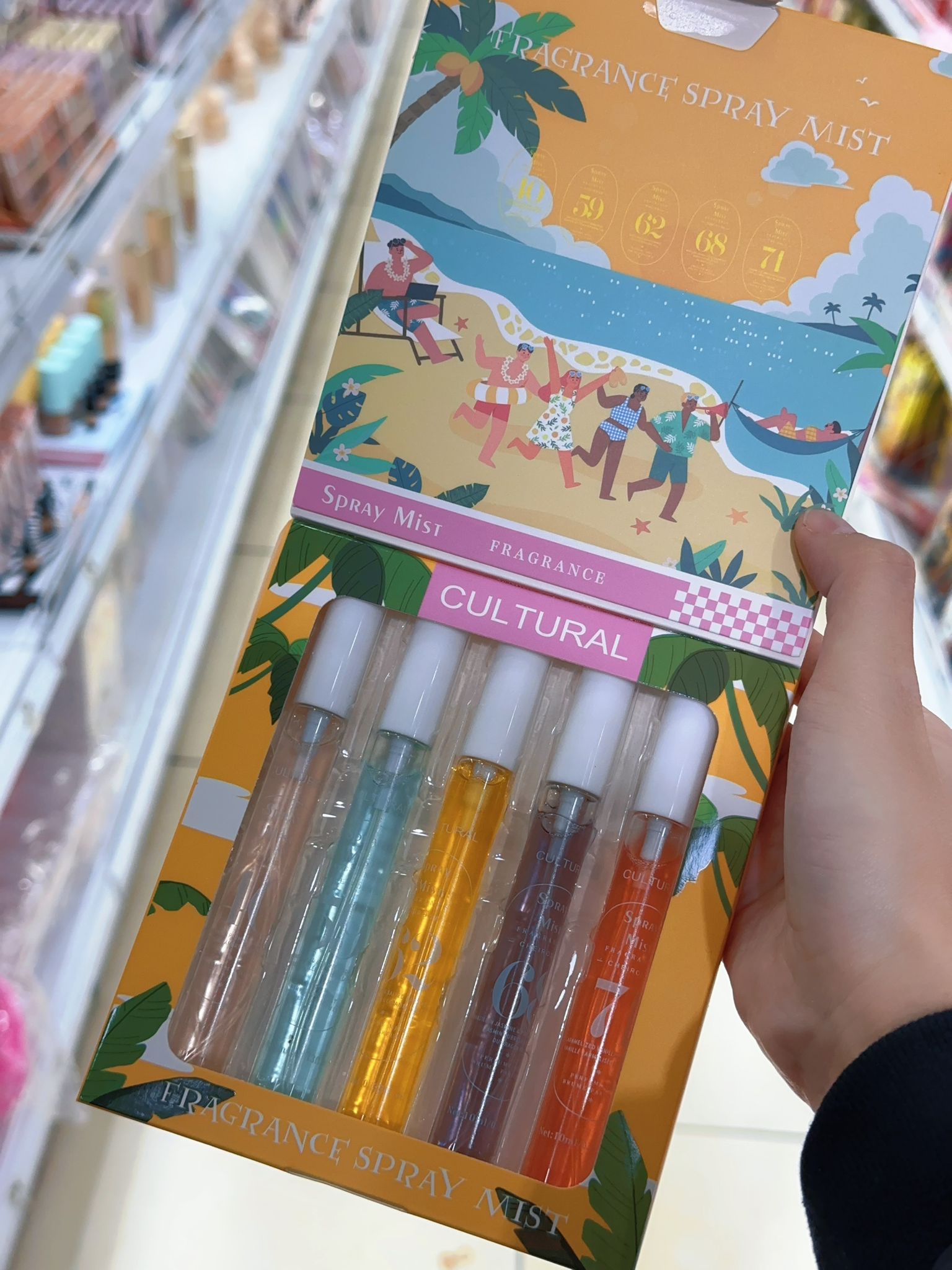 - ncluye cinco brumas corporales en diferentes colores y fragancias.